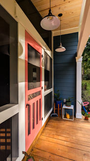 This project included transforming the existing deck, which required repair, into a screened-in back porch with built-in planters and wrap around steps. This design complements the house's character and provides a fun, functional outdoor space.